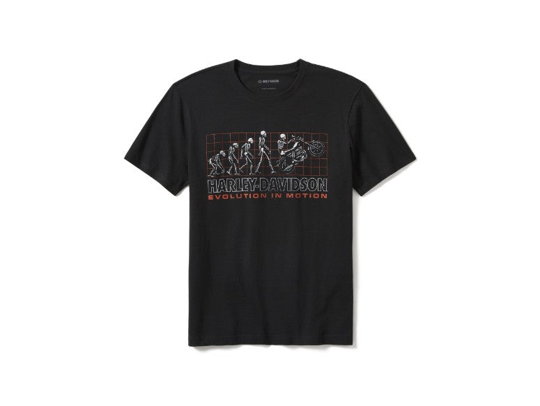 Prima c'era l'uomo, poi c'era la motocicletta... La storia delle nostre origini prende vita sulla maglietta Evolution Graphic. Questa T-shirt da uomo è realizzata in morbido e traspirante jersey di cotone e presenta una scollatura a coste per mantenerne la forma. La grafica distintiva nei nostri colori leggendari rende omaggio alla tradizione "Evolution in Motion" di Harley-Davidson.