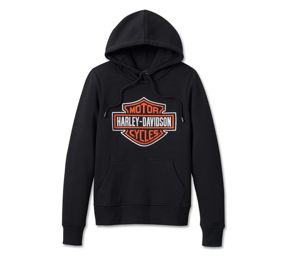 Staying warm and loyal to your favorite motorcycle brand has never been easier than wearing our Custom Bar & Shield Hoodie. Crafted from a cotton and polyester blend fleece, this sweatshirt features all the features you'd expect from a respectable hoodie: roomy kangaroo pockets, a jersey-lined hood, and ribbed cuffs and waistband. Embroidered branding on the front and back makes a bold statement.