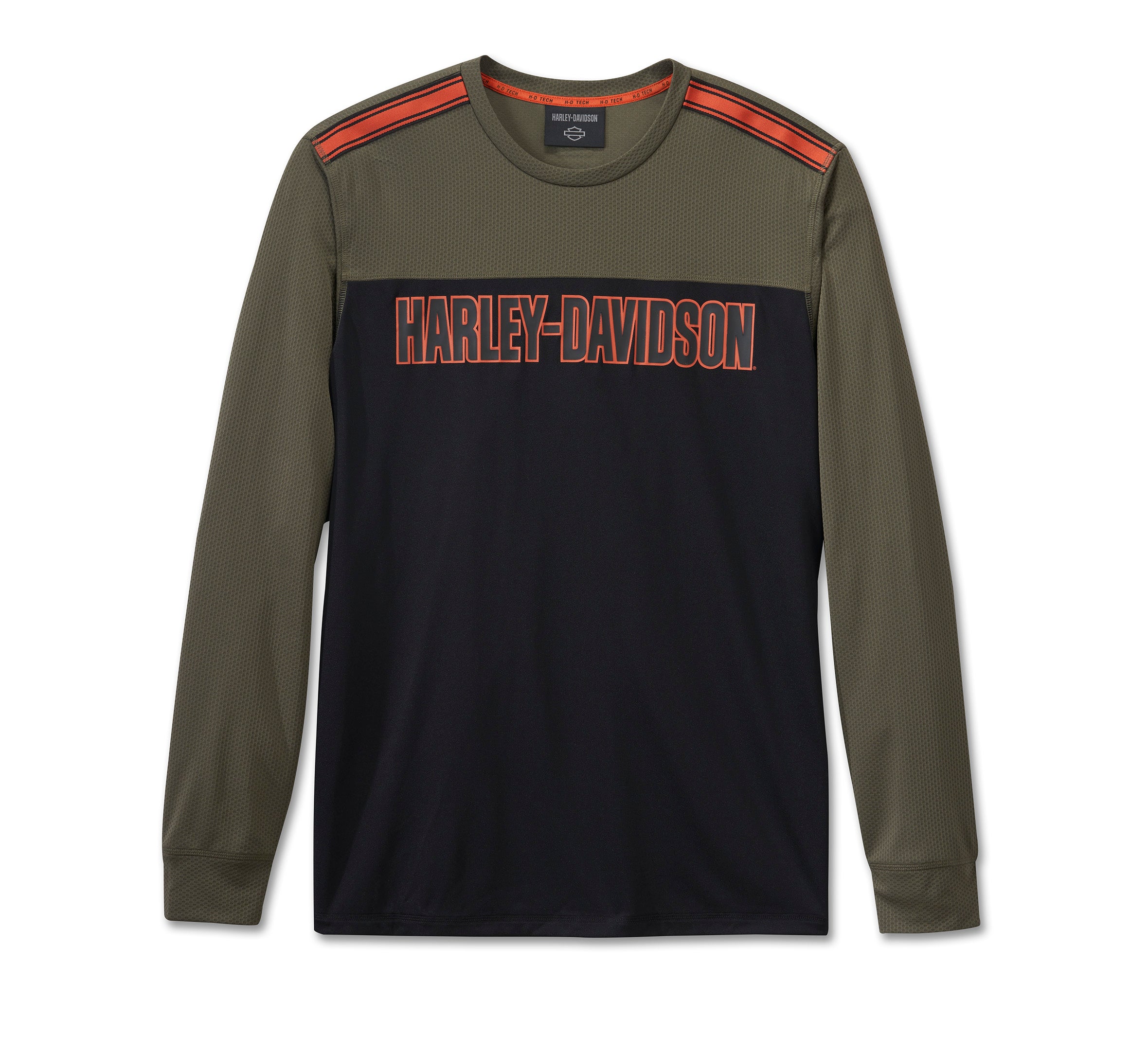 Materials: 100% polyester jersey (body). 100% polyester mesh (yoke and sleeves).